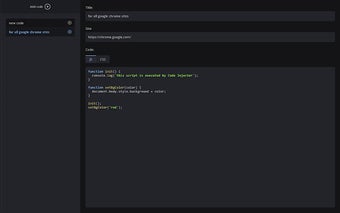 Code Injectores un software gratuito para Chrome, que pertenece a la categoría 'Add-ons & Tools'.